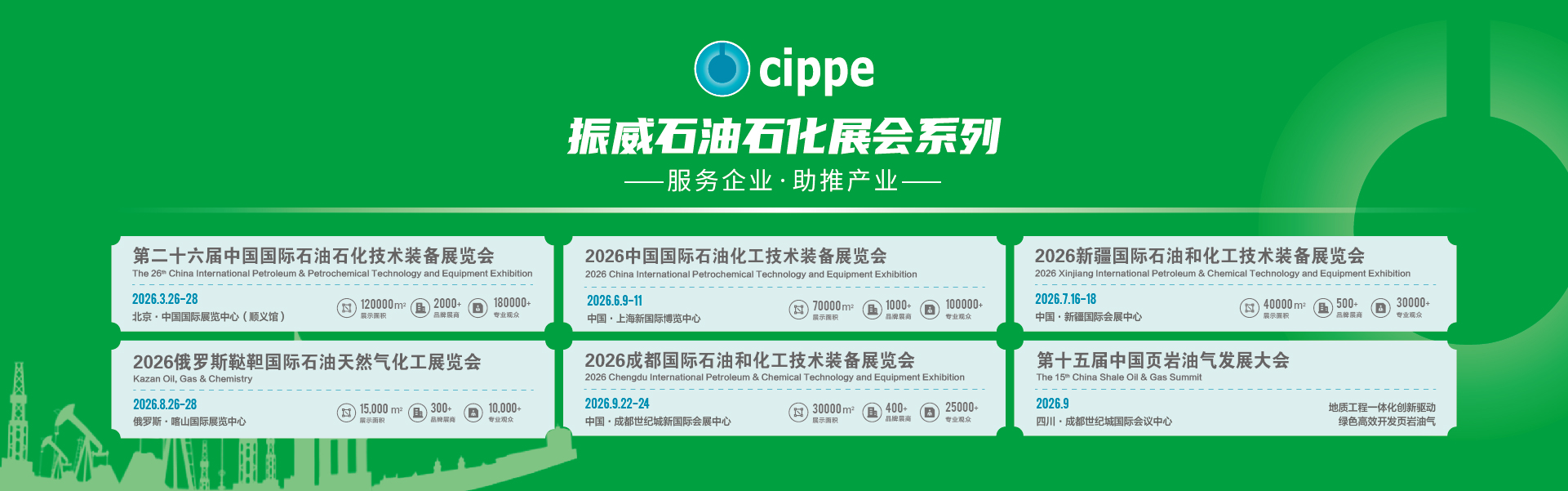 北京國際石油天然氣管道與儲運技術裝備展覽會(CIPE)與一年一度的世界石油裝備大會(cippe)同期舉辦,是石油石化領域的行業例會。CIPE2025有來自美國、德國、英國、法國、加拿大、丹麥、意大利、俄羅斯等18個國際展團展出。知名企業有Transneft、GE、TMK、TRAPIL、國民油井、霍尼韋爾、羅克韋爾、伊薩焊接、卡斯特林、阿特莫斯、寶華壓縮機、海虹老人、阿克蘇諾貝爾、森邁爾鋼鐵、塔塔鋼鐵、博樂特殊鋼等……詳細>>